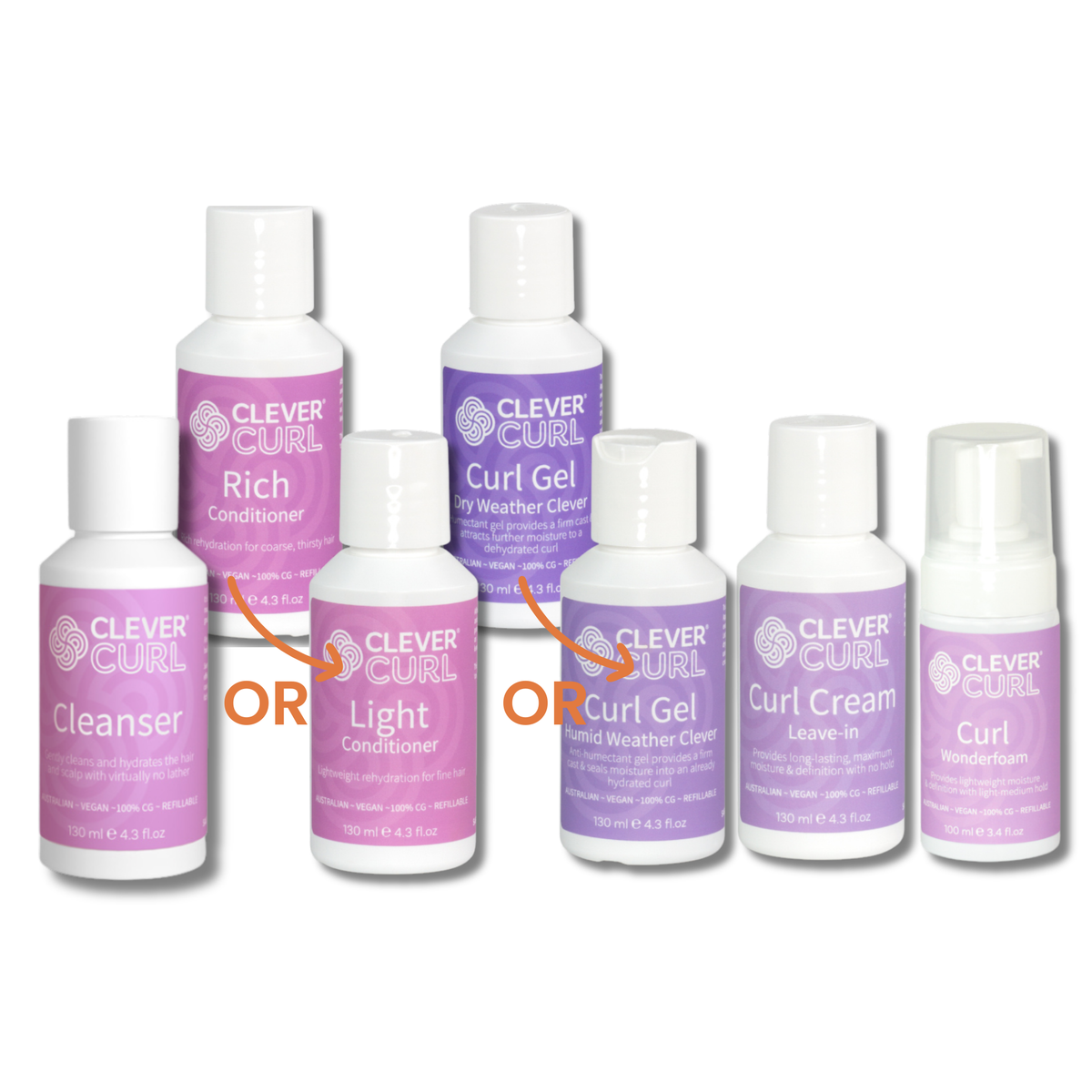 Clever Curl Cleanser, Dry Weather Gel, Light Conditioner and Curl Cream Quad