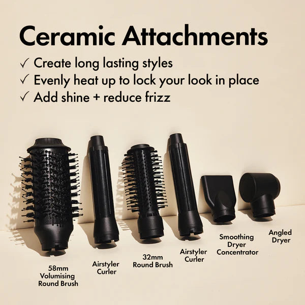 Champagne hair on a Prosecco budget. Bondi Boost Everlast Airstyler System is a 6-attachment multi-tool takes hair from wet to styled, creating voluminous, long-lasting looks—no salon needed. Designed to style without damage, it uses advanced airflow to reduce frizz, boost shine, and lock in your look.