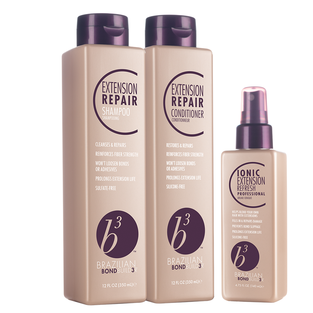 Formulated to meet the unique needs of extension and natural hair, the b3 Extension Repair Trio is a complete system that effectively cleanses, hydrates, detangles and refreshes, helping to give a seamless, natural-look while prolonging extension life an additional 2 months. Use regularly to maintain the look and feel of day one hair quality.