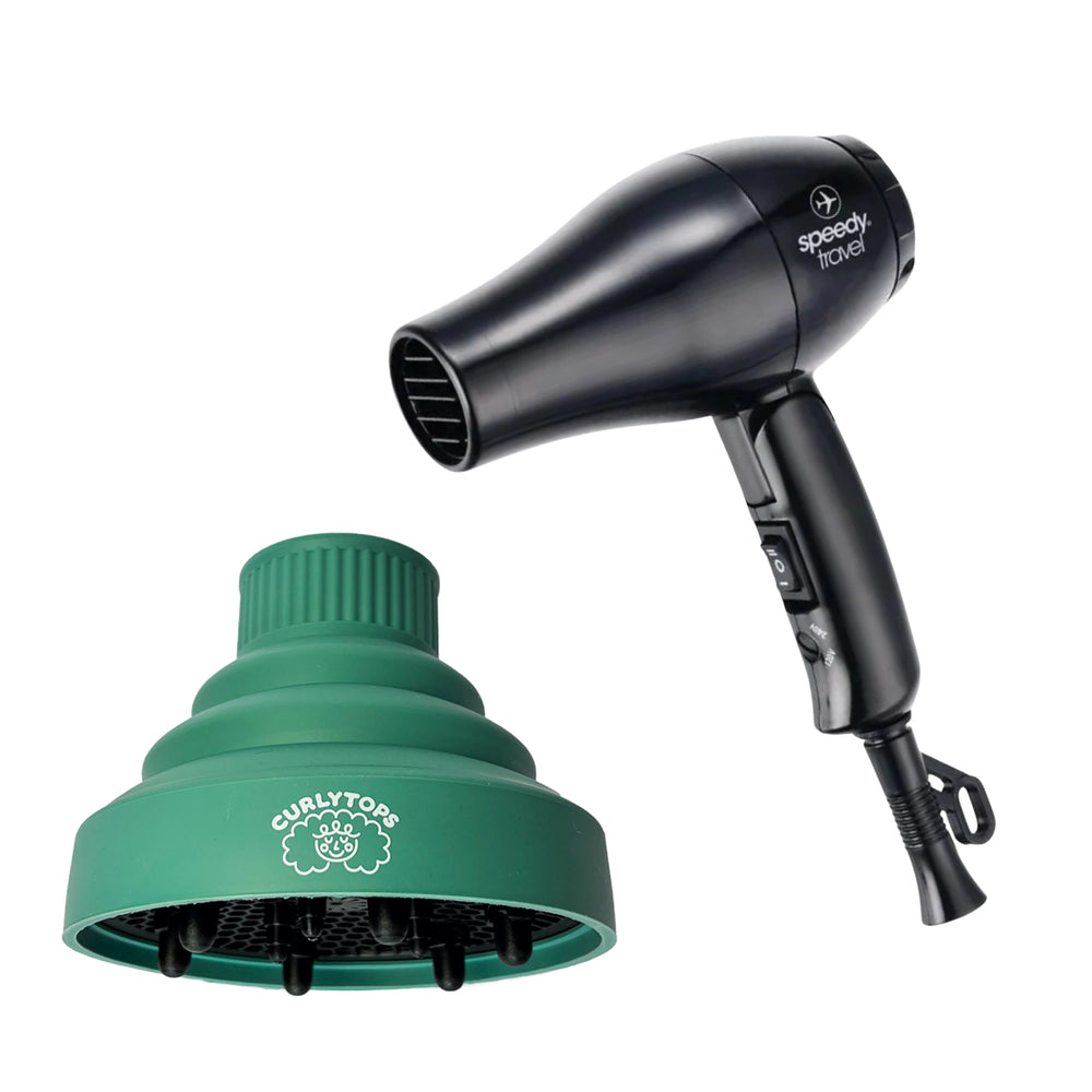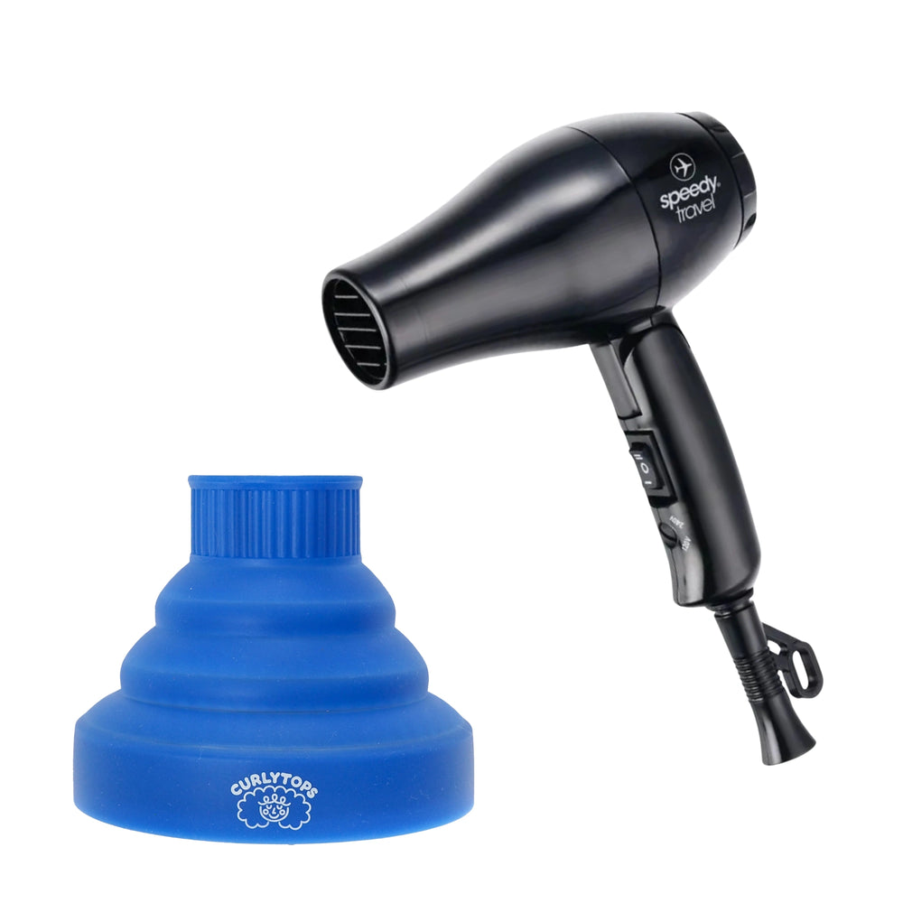 Important: The Curlytops diffuser fits the included Speedy Travel Hair Dryer, and can also be used on many other dryers that match either opening size.