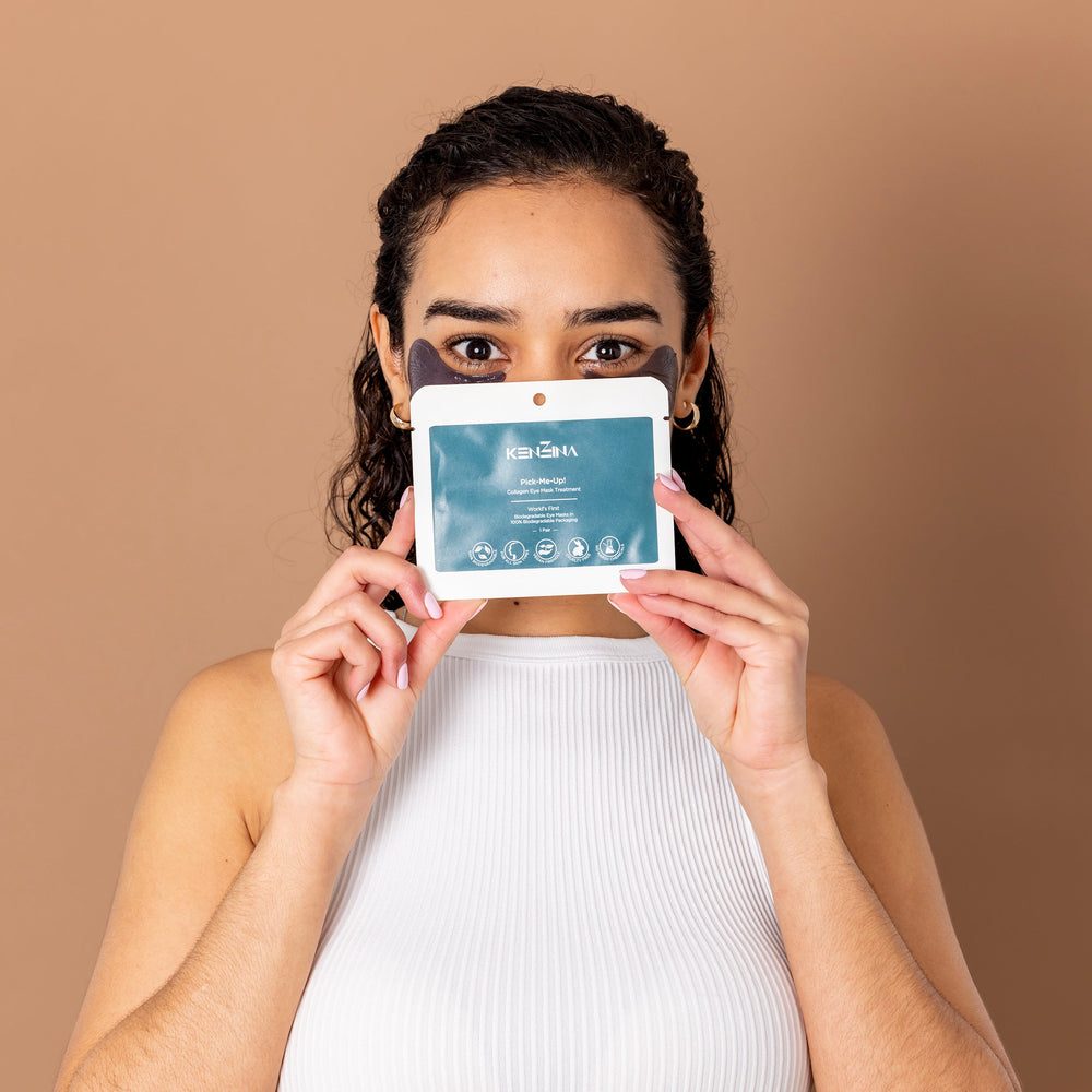 Kenzina Pick-Me-Up Biodegradable Collagen Eye Treatment offers a rejuvenating solution enriched with collagen, hyaluronic acid, cucumber extract, and caffeine. These eye treatments are designed to revitalize tired eyes, reduce puffiness, and replenish the skin's moisture.