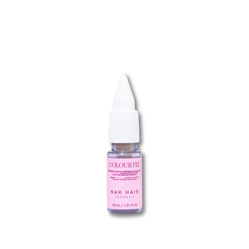 Worried your colour’s fading faster than it should? Nak Colour Fix is your daily go-to for protecting vibrancy and shine — no rinse required. This two-phase leave-in treatment smooths and seals the cuticle while restoring pH balance after colouring, leaving your hair soft, hydrated, and luminous.